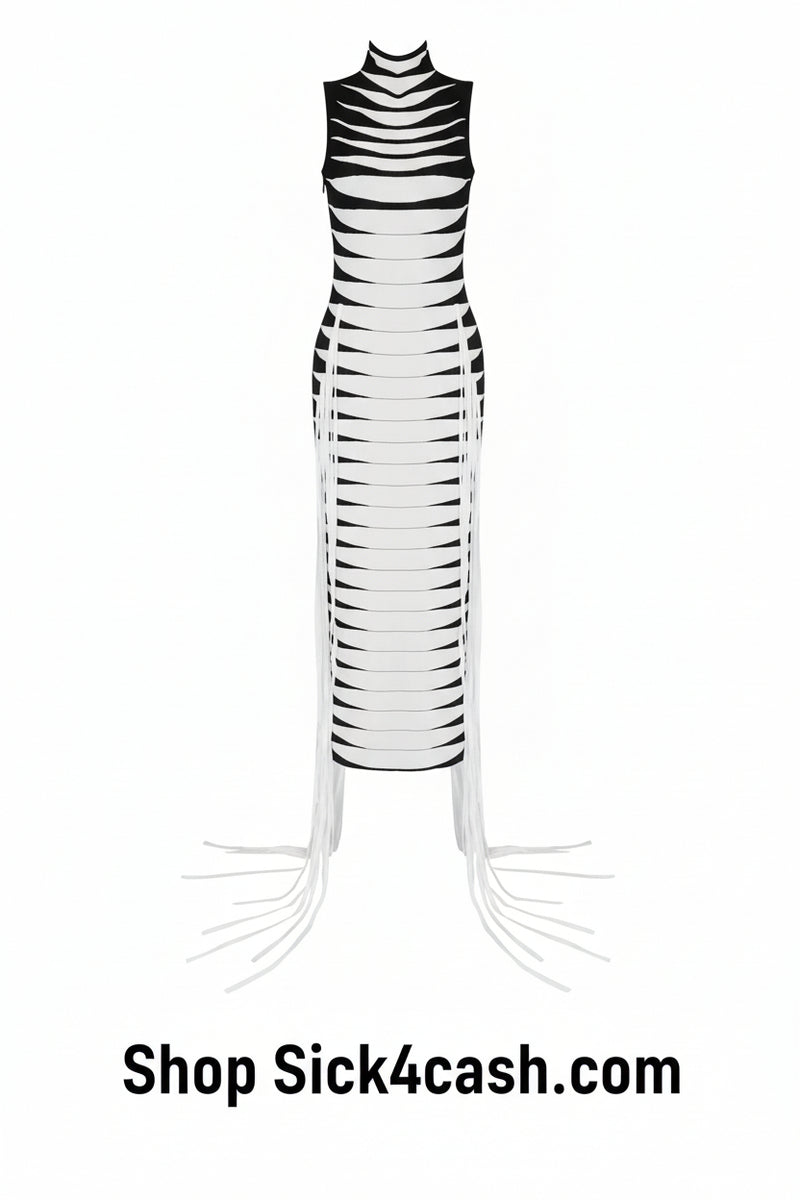 Make a statement in this stunning tassel sleeveless bodycon dress.